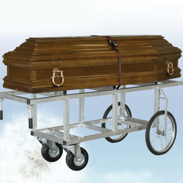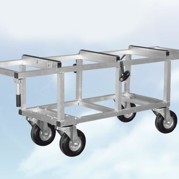 Carrello portabare in alluminio con ruote imperforabili piroettanti.