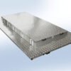 Realizzato in alluminio, dotato di ruote per il posizionamento.
